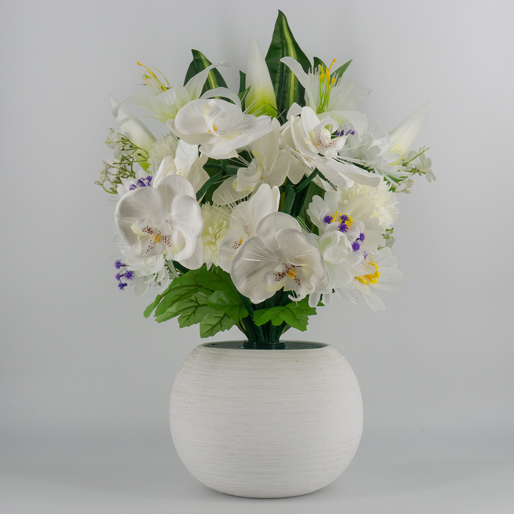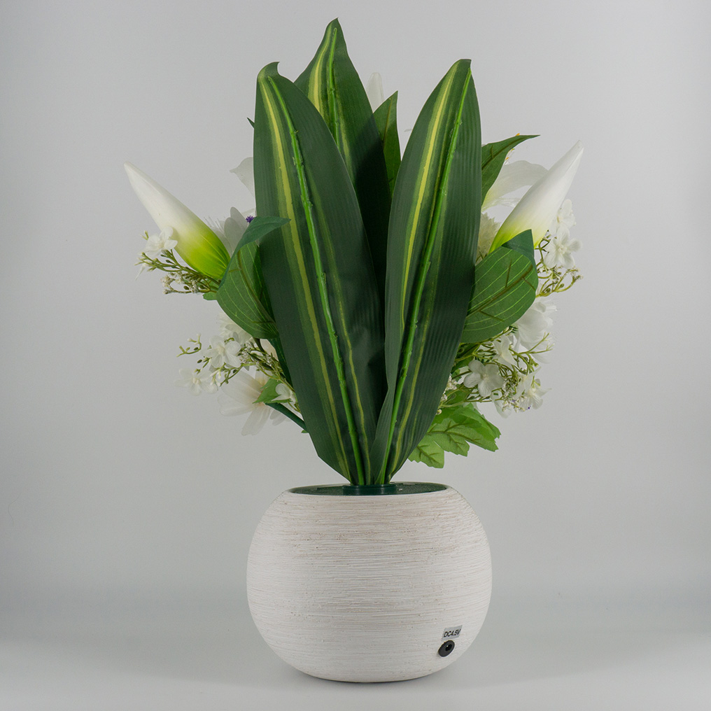 陶器製土台と7色に変化する光の花が、華やかに故人を偲びます。