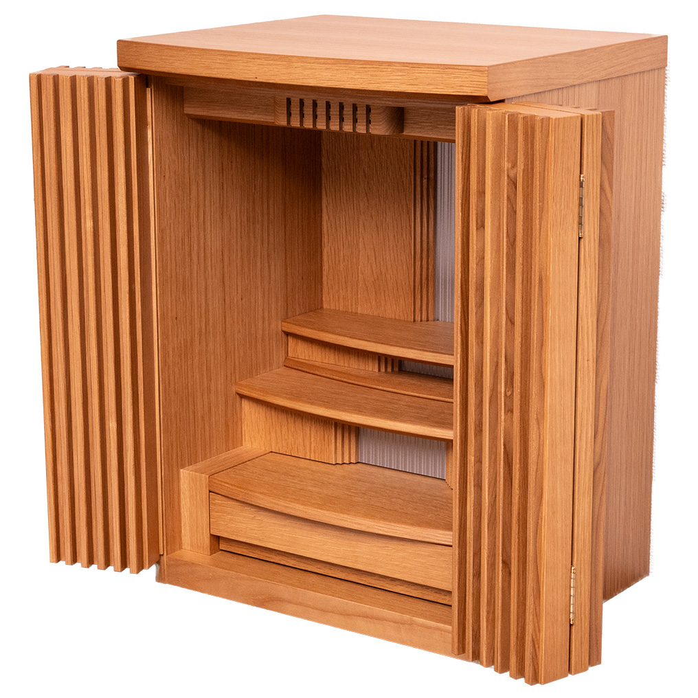 限られた空間の中でお祀りする小型のお仏壇となっております。オーク製でスッキリとしたデザインとなっております。