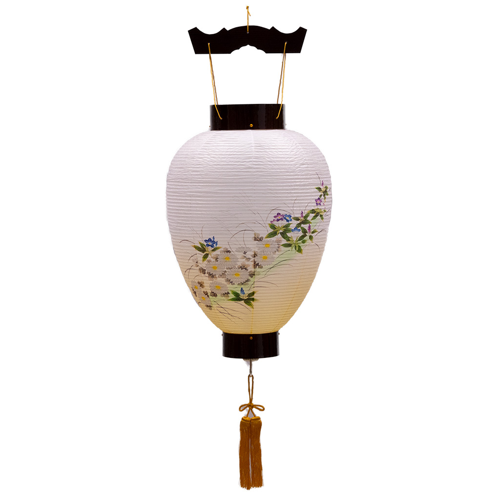 高さ44cm × 幅29cmの飾りやすいサイズ感で、棚、仏壇の横や棚の上など、様々な場所に飾れます。吊り下げ型の御所提灯タイプです。