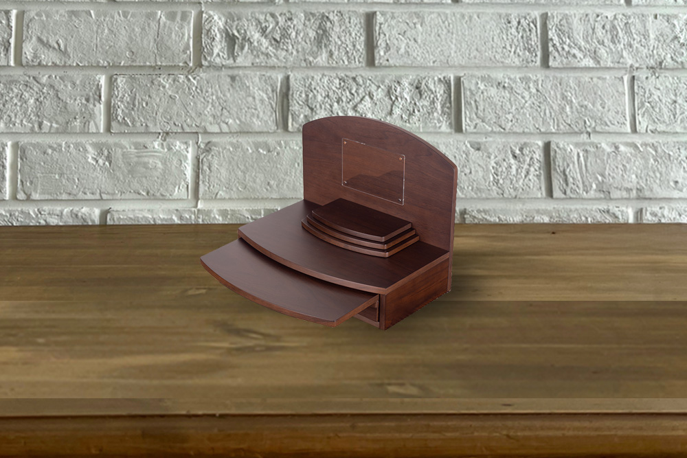 ダーク色で存在感がありながらも空間によく馴染む木目と柔らかな曲線が美しく現代の住空間に自然と馴染みます。引き出し収納やスライド棚も備わっており、日々のご供養に必要な道具をすっきりと収められる機能性も魅力。家具のように洗練された佇まいで、心を整える時間を静かに支えてくれる一台です。