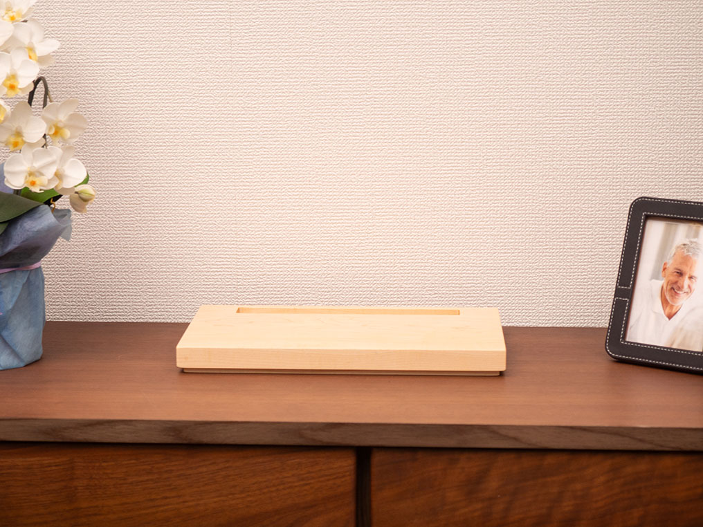 限られた空間の中でお祀りするミニ仏壇となっております。材質はメープル製で、シンプルなデザインで和・洋の部屋にマッチングするデザインとなっております。