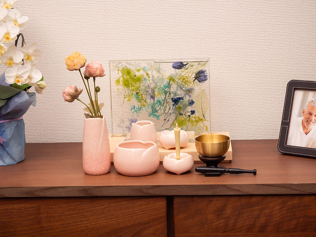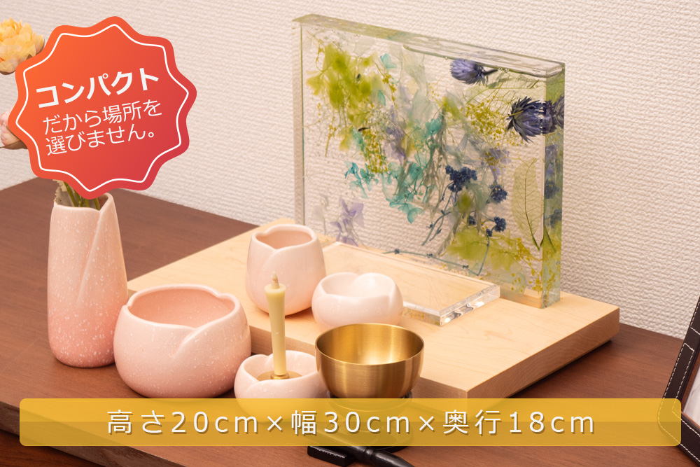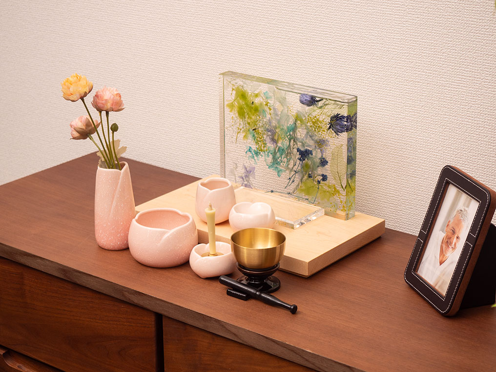 シンプルなお仏壇 ハーバリウムが彩る、癒しの祈り空間