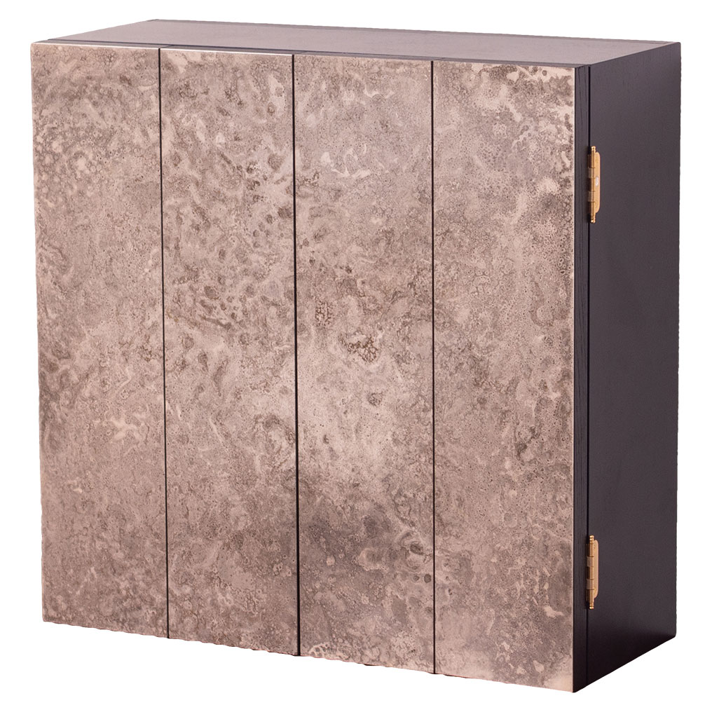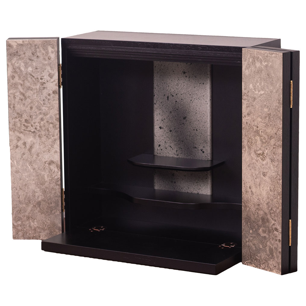 設置する場所は平たんな壁だけ。限られた空間の中でお祀りするお仏壇です。木材(栓)の木目を生かしたシンプルなデザイン。