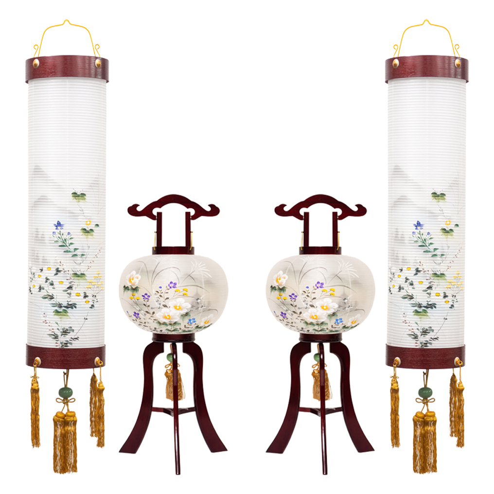 大切なお盆のご供養を、より格調高く、華やかに彩る「住吉提灯」と「大内行灯(置き提灯)」の特別なセットをご用意しました。