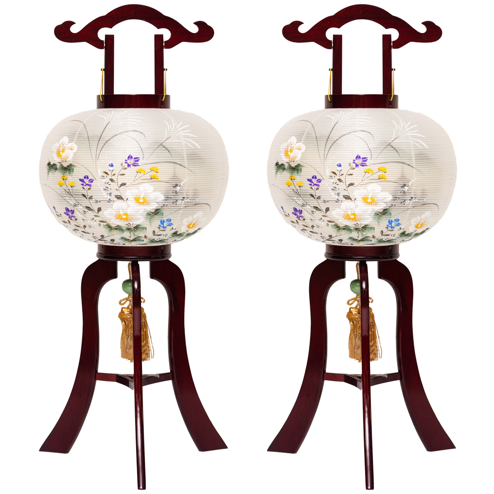 清楚な白地に、職人がひとつひとつ丁寧に描き上げた芙蓉柄です。セットで飾ることで、盆棚(精霊棚)の左右の調和が取れ、お部屋全体が優雅で落ち着いた雰囲気に包まれます。