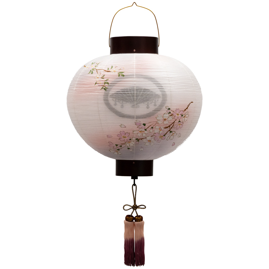 火袋中央には家紋が、その周りには繊細な桜の枝の絵柄が描かれています。