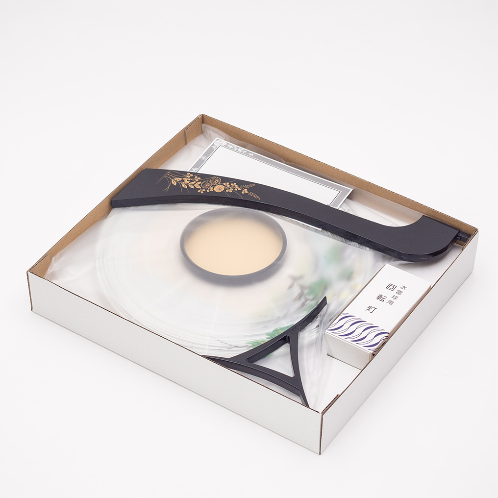 二重張りの火袋に優雅な伝統柄が揺らめく回転行灯。