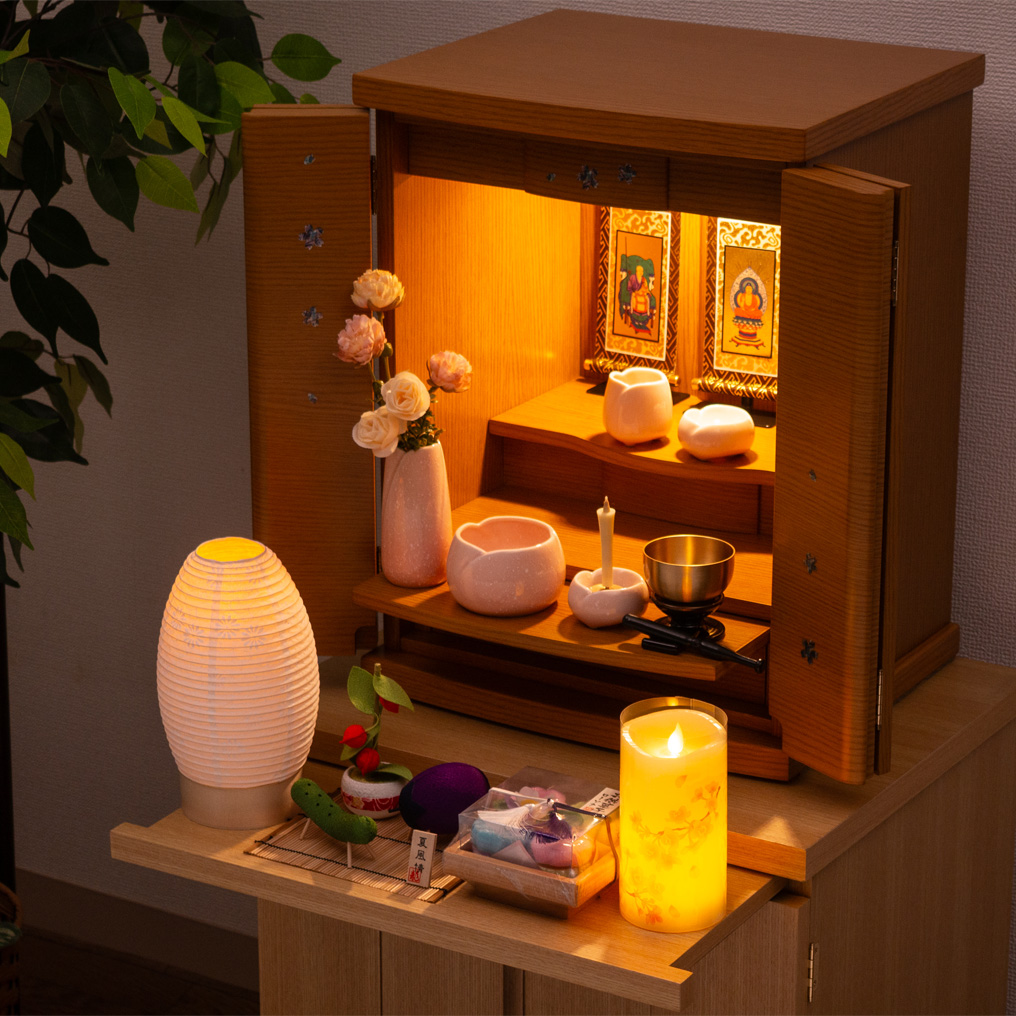 和モダンの華やかなデザインがお仏壇を明るく彩ります。