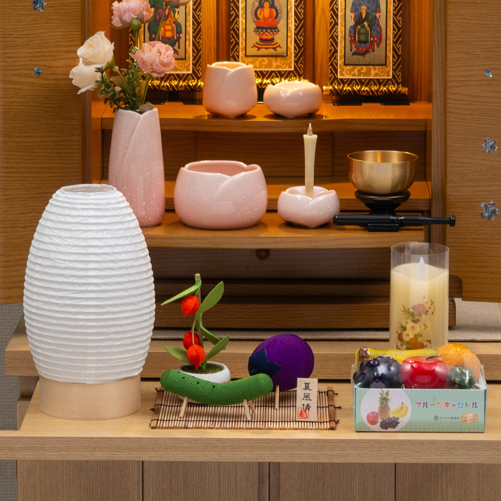 お盆飾りにはお盆にご先祖様が帰ってくることを華やかにお迎えし、おもてなしをするという意味があります。