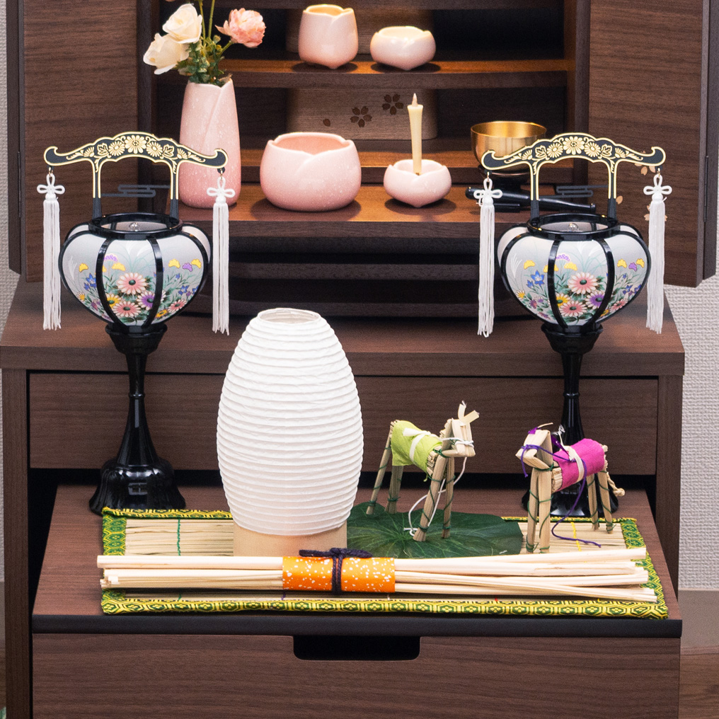 お盆飾りにはお盆にご先祖様が帰ってくることを華やかにお迎えし、おもてなしをするという意味があります。