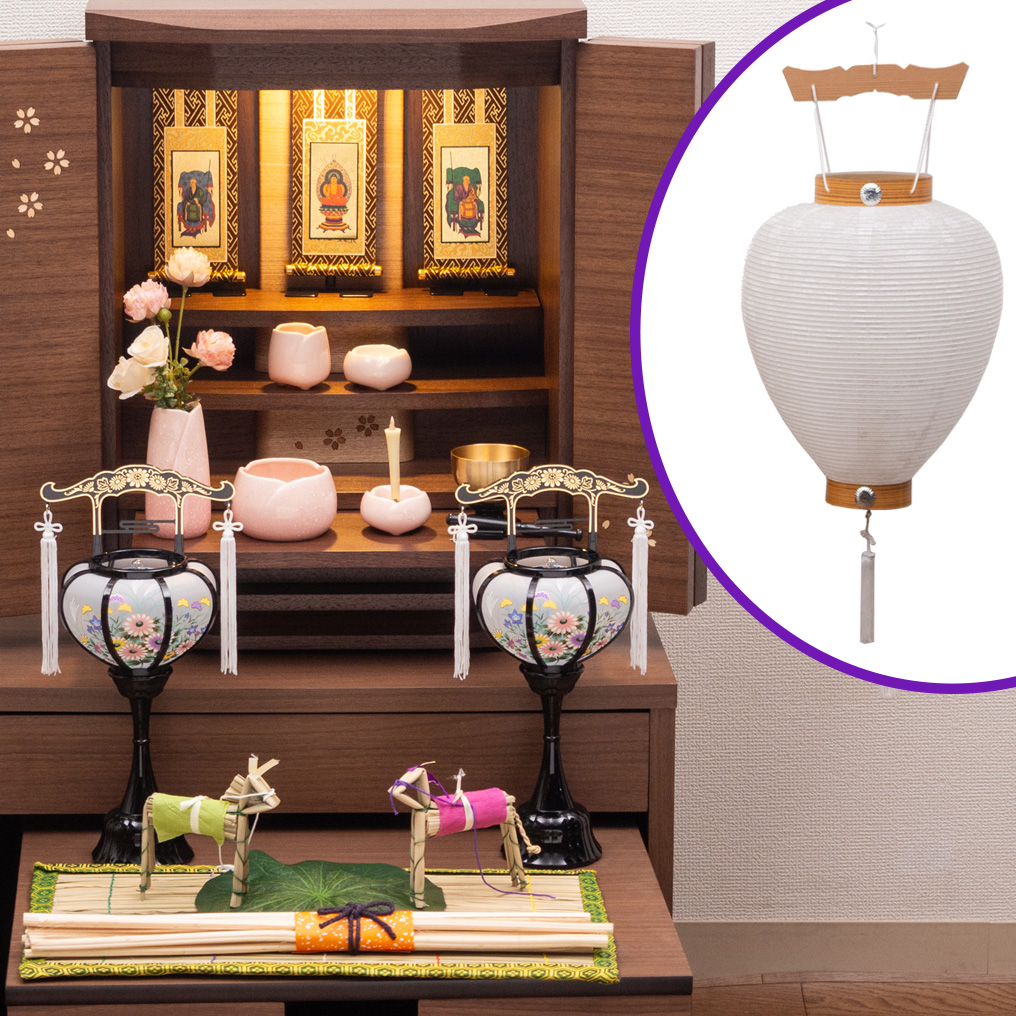 玄関先や軒下、仏壇の前などに吊り下げて使用する、伝統的なタイプです。「白紋天」は、故人が亡くなられて初めて迎えるお盆(新盆・初盆)の時のみに使います。白い色で、無垢な心で霊を迎える意味を持ちます。